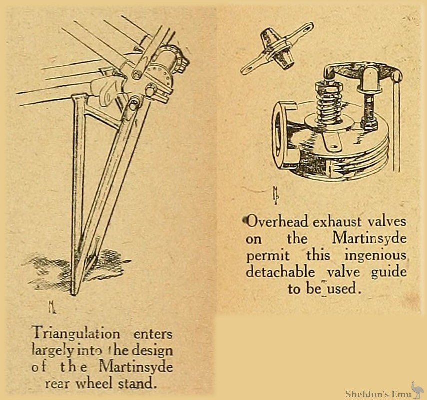 Overhead exhaust valves on the Martinsyde permit this ingenious detachable valve guide to be used.