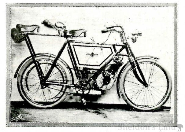 Messrs. Collier and Sons are exhibiting the Matchless motor bicycle, which is fitted with 2¾ h.p. De Dion motor (74 mm. x 76 mm.), or 2¾ h.p. M.M.C. motor (80 mm. x 80 mm.), or 3¾ h.p. M.M.C. (85 mm. x 85 mm.) ; also the Matchless forecarriage, which is fitted with the same engines.