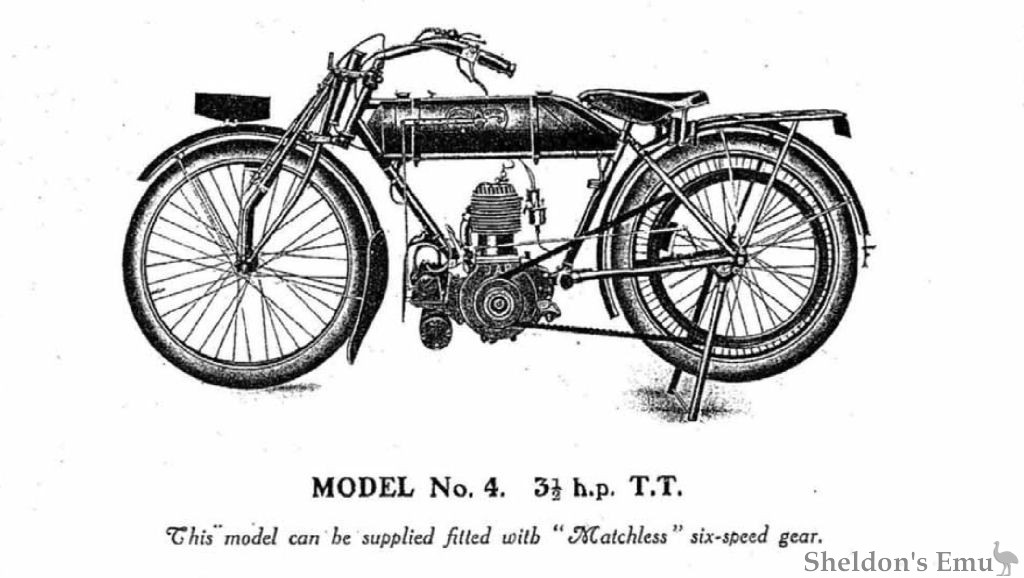 "MATCHLESS" six-speed gear, 10 Guineas extra.