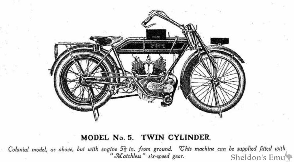 Colonial model, as above, but with engine 5½ in. from ground. This machine can be supplied fitted with "Matchless" six-speed gear.