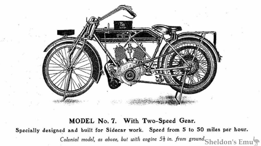 Specially designed and built for Sidecar work. Speed from 5 to 50 miles per hour. SPECIFICATION
