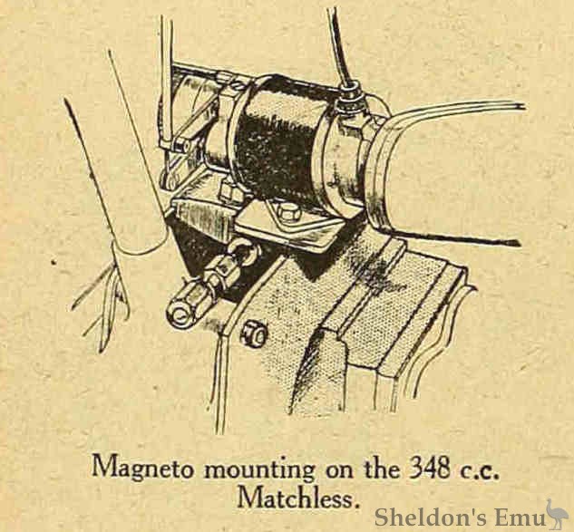 Finally, there are two examples of the new 348 c.c. solo Matchless, which uses proprietary components - Blackburne engine and Sturmey gear box - in a distinctive manner. On one the electric equipment is the new Lucas Magdynette.