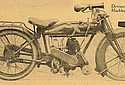 Points of convenience have been carefully studied, kneegrips being fitted as a standard, and an excellent all-metal tool box situated on the rear of the carrier and fitting practically flush with the top thereof. A Webb brake is fitted to the front wheel and an internal expanding brake to the rear wheel, while the Binks two-jet semi-automatic carburetter forms part of the standard equipment. If desired, a Lucas Magdyno can be provided at an extra cost. Both wheels have voiturette rims carrying 650x65 mm. tyres, and the weight is 220 lb., price £72 10s.