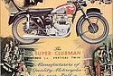 FRAME. Duplex cradle with full Teledraulic oil damped rear suspension, swinging arm of massive construction, pivoting in self lubricating bush in light alloy casting. Centre front and prop stands.