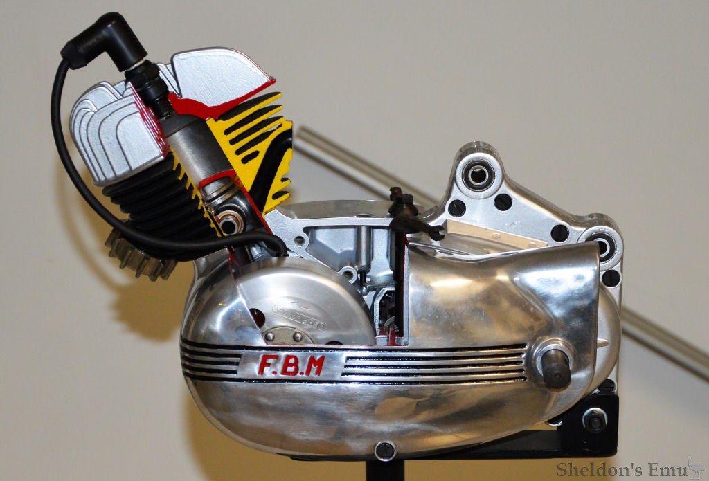 In 1952 they introduced the Gabbiano 125cc two-stroke a the horizontal engine slung beneath a low-slung single tubular steel frame. This was followed by the Vampire 200cc. In 1955 FBM began producing engines for other manufacturers which included the 48cc Pettirosso engine, which remained in production for thirty years.