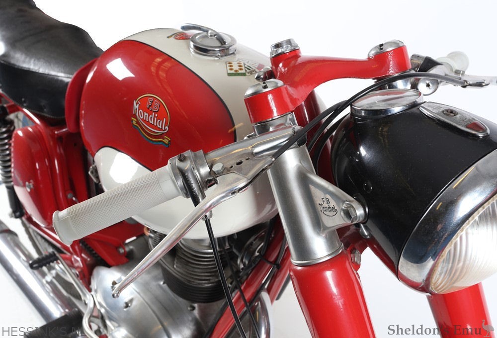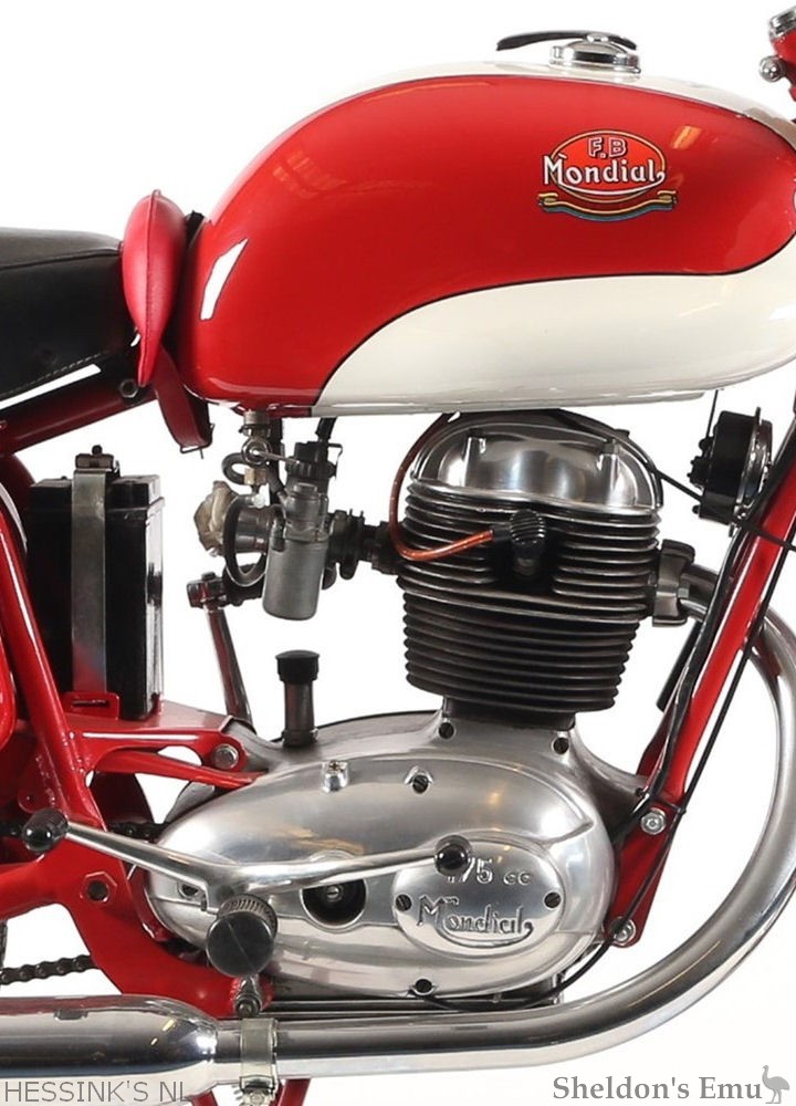 The name 'Mondial' first appeared on a motorcycle in 1948 when the Boselli brothers (FB = Fratelli Boselli) introduced a revolutionary double-overhead-camshaft 125cc racer. Mondial's miniature masterpiece brought the Bologna manufacturer its first World Championship the following year and proved equally dominant in 1950 and '51.