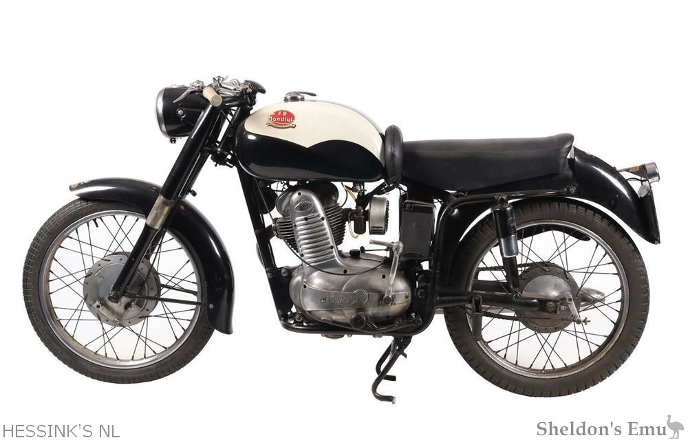 The Mondial 175cc TV, or 'Turismo Veloce', was Mondial's first street bike to employ a chain-driven single overhead camshaft engine. The SOHC Mondials were available in three versions: Turismo Veloce, Sport Turismo, and Gran Sport.