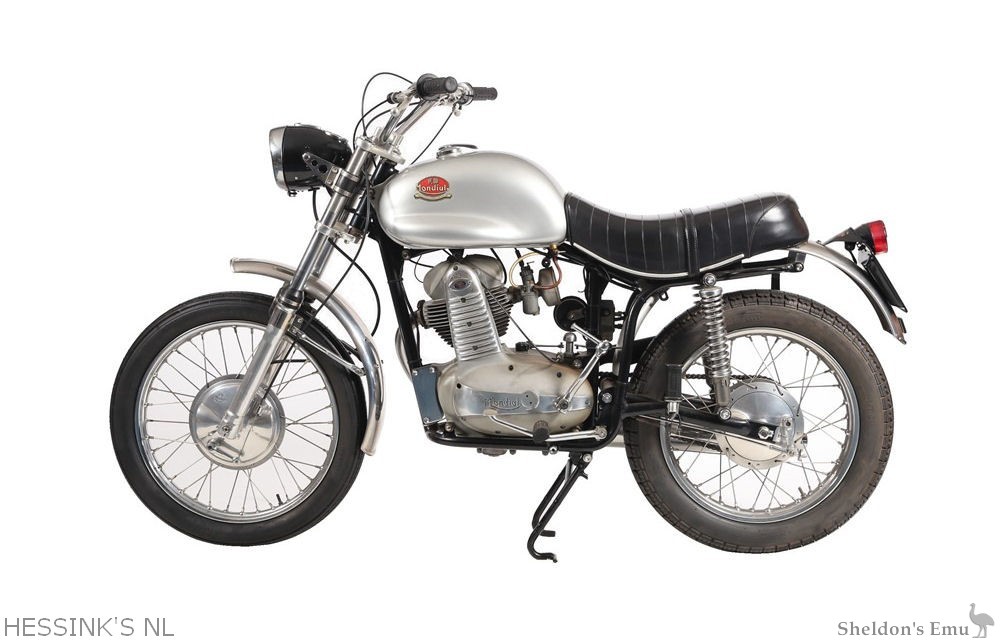 The machine had a stronger forks, a vertical shock absorber with external coil springs in the rear, higher handlebars, raised mudguards and exhausts, knobby tyres and a sturdy saddle.