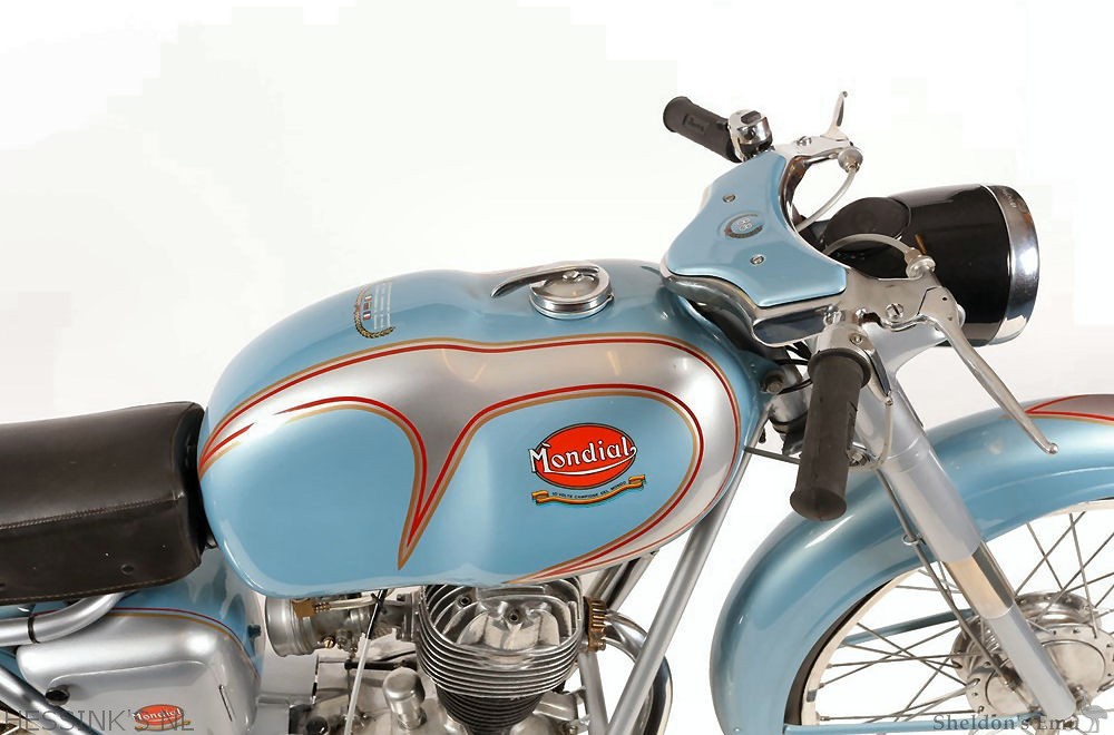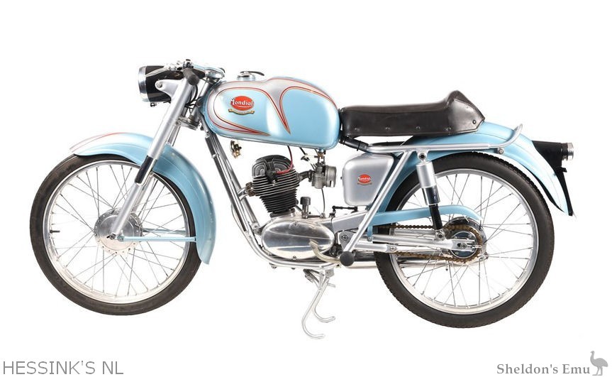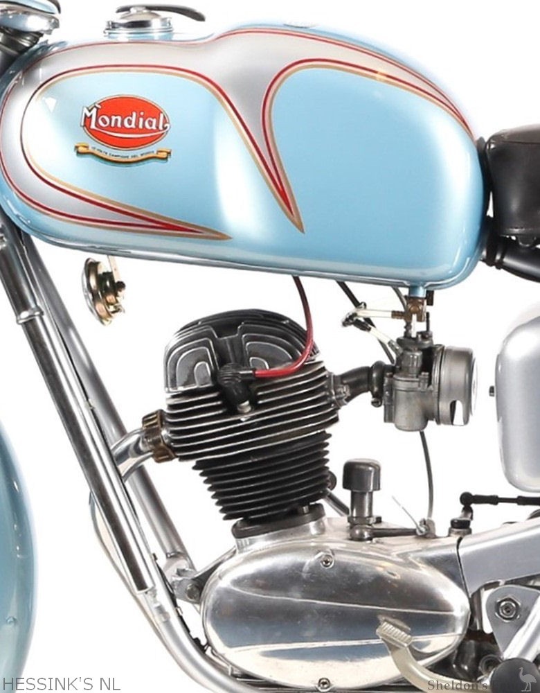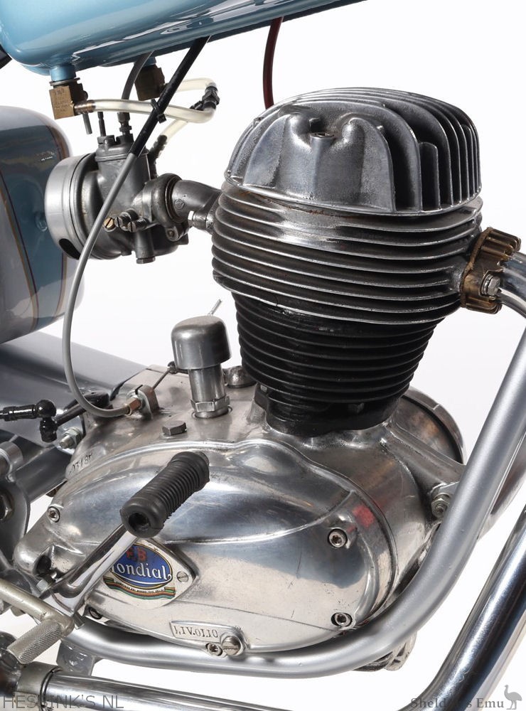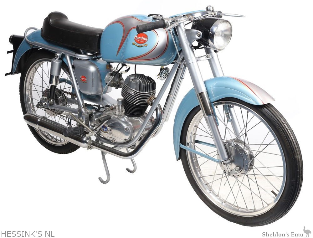 The Mondial 88 Sport 'Modello 58' has a displacement of 86cc and is a 4-speed, OHV four-stroke. Modello 58 relates to the design year.
