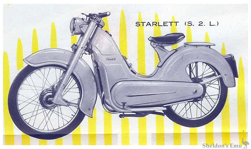 1953. The Starlett prototype first appeared at the Foire de Lyon with a Villiers 98cc engine. This was followed by three more Starlett models, the S2S (98cc), the S2L (112cc) and the 3-speed S315.