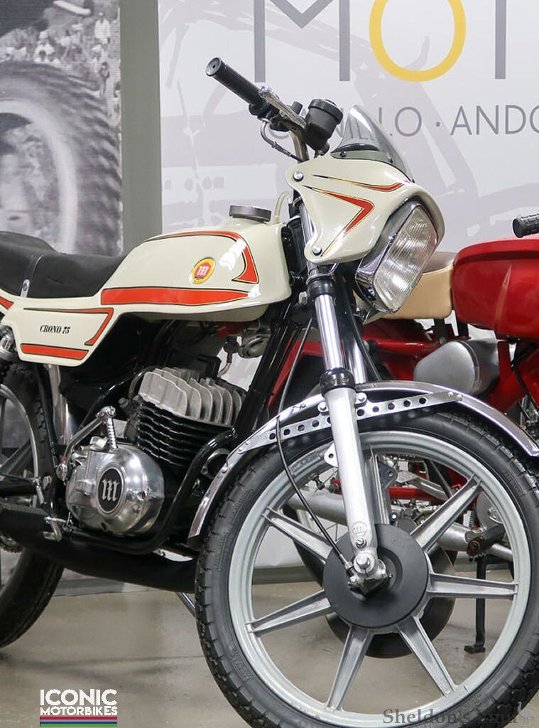 The Crono was the firm's final road model, available in 75cc, 125cc, and 350cc displacements. Created in response to Bultaco's introduction of the Streaker, a racing series accompanied its production, La Copa Crono (The Crono Cup).