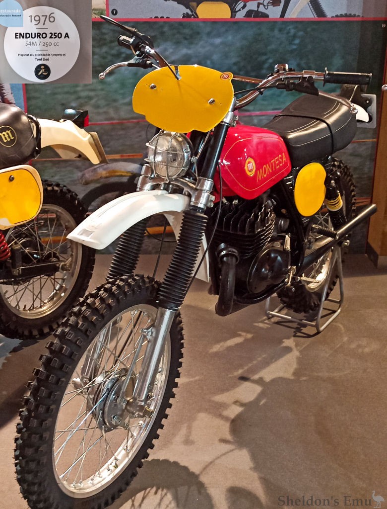 Montesa's team participated in the Isle of Man TT on three occasions, in 1951, 1954 and 1956. This unit was present in the 1956 expedition, with F.X. Bultó and L. Milá, it has been maintained since then by the Basque rider José Ramón Eizaguirre. It has a cylinder head with parabolic combustion chamber, extra lubrication by sprayer in the carburettor and an estimated power of 17 bhp at 8,000 rpm.
