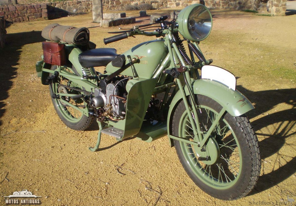 The GT17 was the first military motorcycle built at Mandello del Lario. It was produced in single seat and two seater versions, the latter having the fuel tank situated further forwards and higher to allow the rider saddle to be moved forwards allowing room for the pillion and a better centre of gravity.