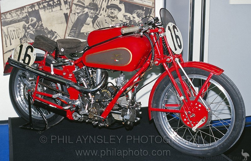 In 1935 it gained rear suspension and was the first Moto Guzzi racer to do so. That year, Stanley Woods won the IOM Tourist Trophy Senior race.