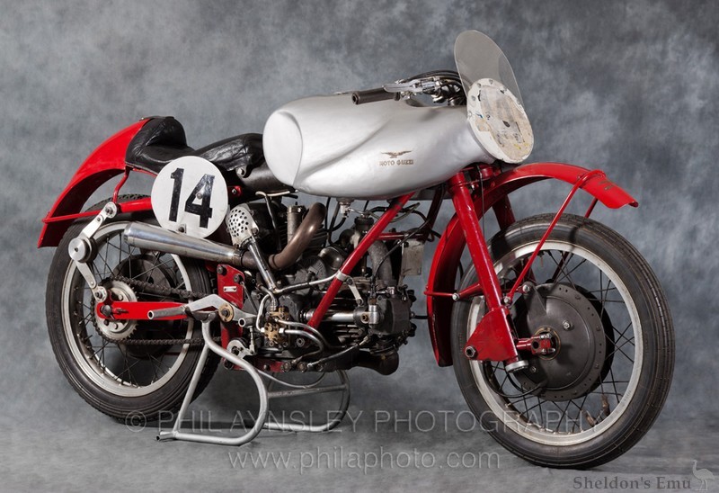 The Bicilindrica (twin-cylinder) 500 2C was designed in 1933 by Carlo Guzzi, who reputedly mated a pair of Albatross 250 engines resulting in a 120 degree V-twin in much the same manner as did Phil Irving a few years later.