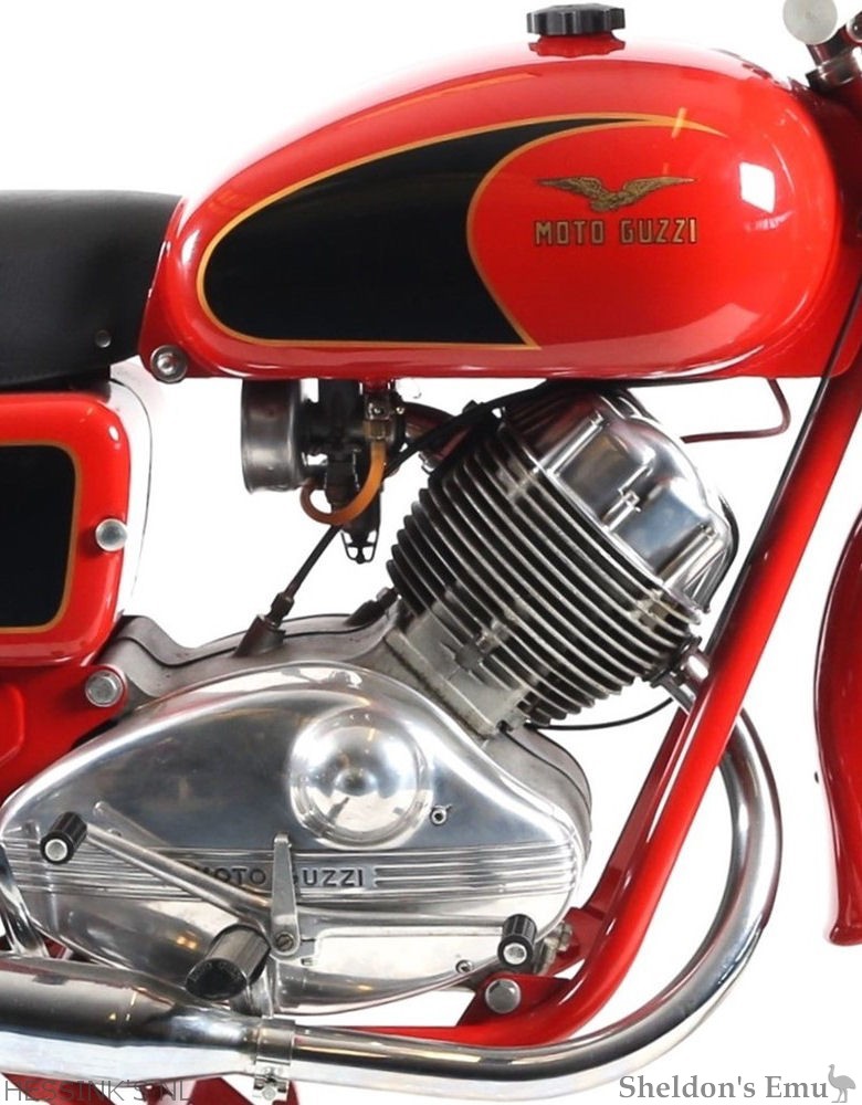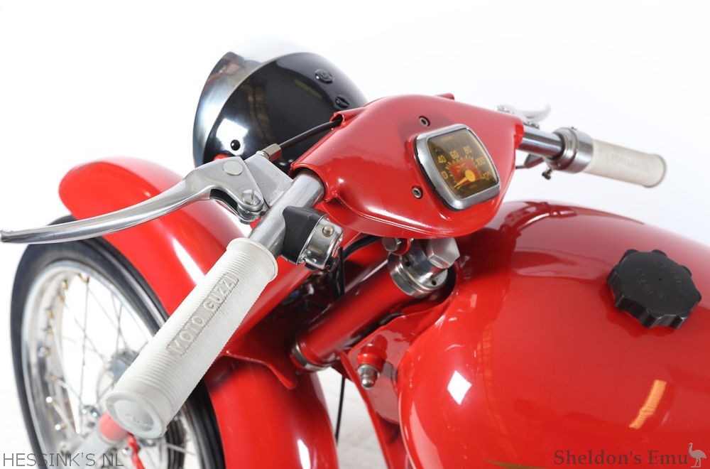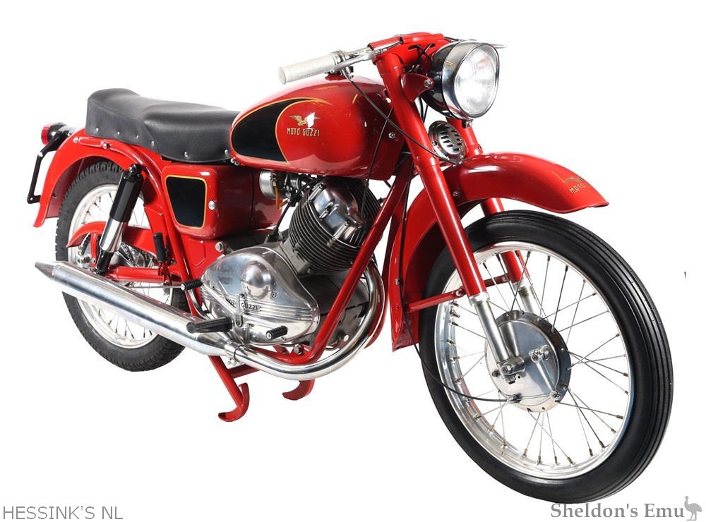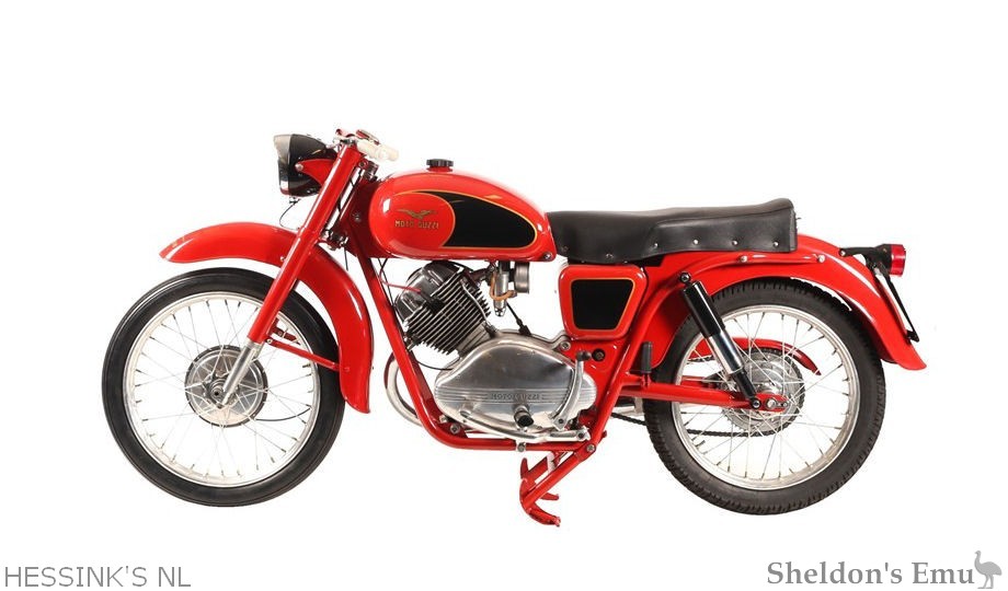 The first Lodola Sport of 1956 was priced at 249,000 lire, and was modernized in 1958 with a larger tank and aluminum full-width wheel hubs to replace the offset brake drums. Power was increased from 9 to 11 horsepower, giving the Lodola a claimed top speed of 120 km/h - a remarkable figure for a production 175 at that time.