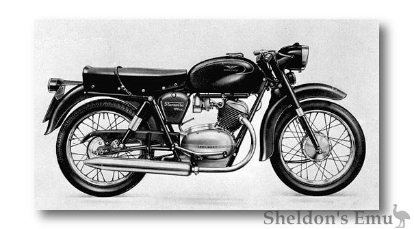Inizialmente è disponibile solo il tipo Turismo. Nel 1961 viene presentato il modello Sport, con un modore modificato che eroga 8.5 CV e premette alla moto di raggiungere i 110 km/h. Il motore del modello Sport ha la testa emisferica, valvole inclinate, un maggiore rapporto di compressione (9.8:1 invece di 8:1). Il carburatore è un UB20B, con il classico tromboncino. Il serbatoio è maggiorato e con una capacità di 14.5 al posto dei 12.5 del modello Turismo.
