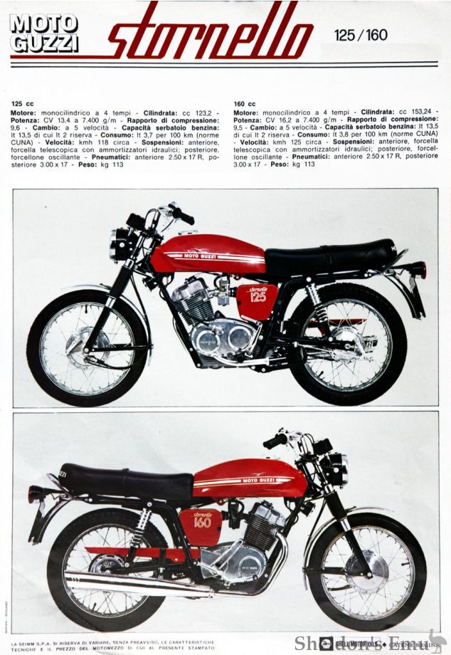 Nel 1971 la Guzzi presenta i nuovi modelli dello Stornello: le versioni a 5 marce. I modelli sono: