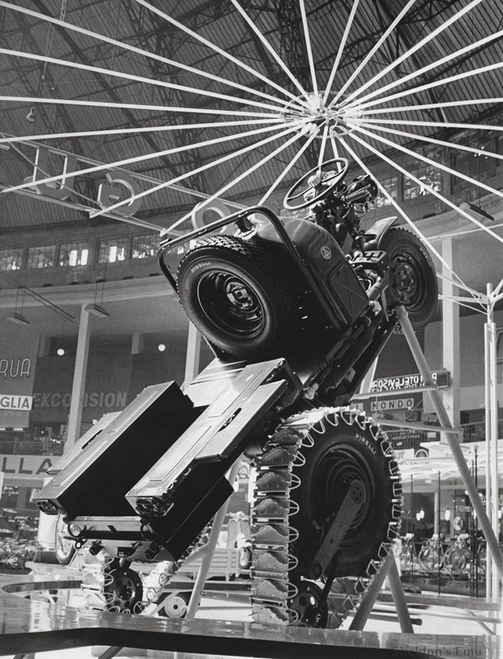 The "Mechanical Mule" was a very special machine, with three driving wheels and the possibility of varying the wheelbase and track. The 754 cc engine delivered just 20 hp, due to the low compression ratio, made inevitable by the tactical need to consume, when needed, poor quality petrol. However, the maximum torque of 47 Nm was already reached at 2400 rpm. There was a single 26mm Weber carburettor, and the ignition coil was waterproof.