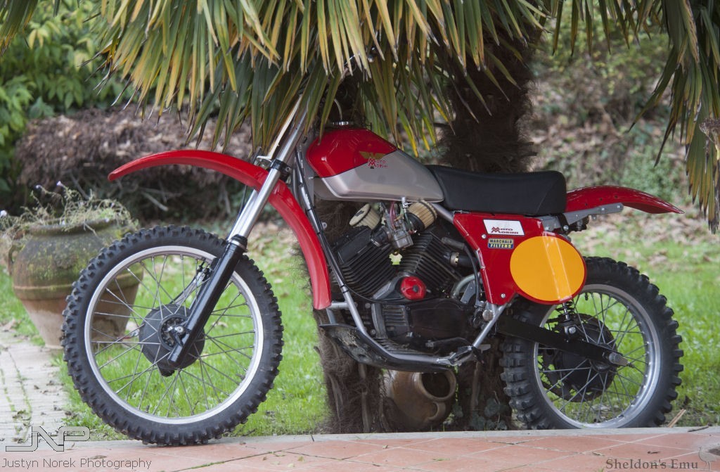 Covallero's Moto Morini 350 V2 motocrosser is a very harmonious machine.