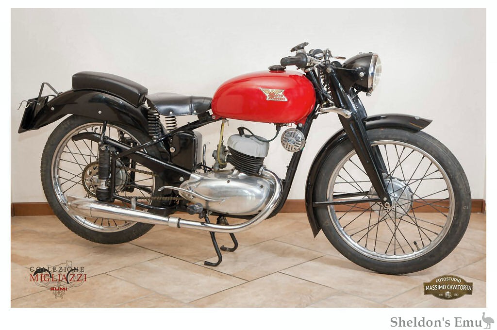 Alfonso Morini, a former road racer and a good designer, was well aware that competition was an ideal tool to advertise his product. The marque gained its first title in 1948 when Raffaele Alberti took the 125 Italian championship, and further success came the following year with Umberto Masetti at the helm.