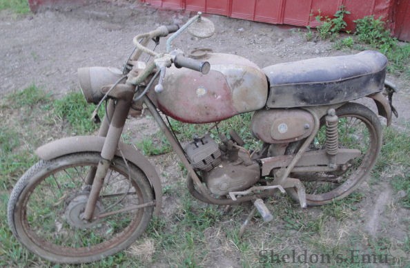 I think it may be a early Motobecane they made motorbikes before bicycles and the trade mark looks the same (a big "M with wings on it) the Motoconfort has a finned cylinder in the valley of the M, other than that same same. The dealer claims to have bought it in France and shipped it here. He also says it is a 1947 but I showed him the date 1950 on the motor ID plate. The bike is 99.99% complete but covered with a light rust. I plan to keep a eye on this and see if it sells, the owner may get tired of it sitting around (and it will at $2900). If he just wants to move it, I may be able to help him.