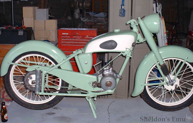 This has a 125cc four stroke side-valve engine.There doesnt seem to be much information available on the internet,and parts are virtually unobtainable. However it has been possible to refurbish the bike using more modern parts where