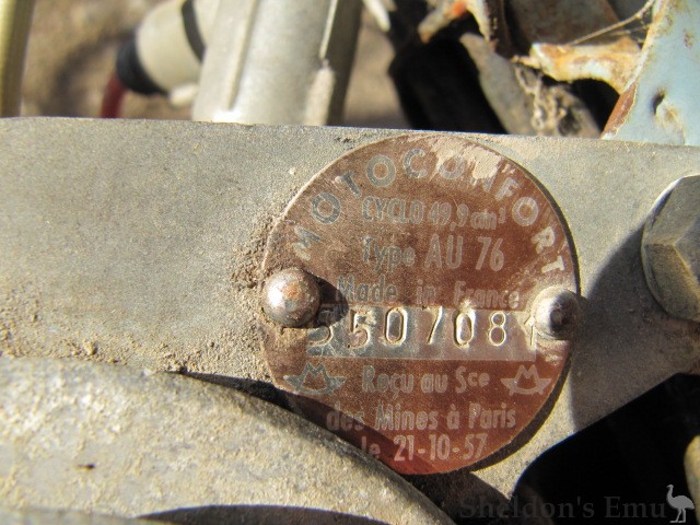 Just purchased a rather sad looking moped. A small disk on an engine mount gives the name Motoconfort and a number 2026170 49.9cm3 and that it was delivered in De 1954. Any info/workshop manual etc.