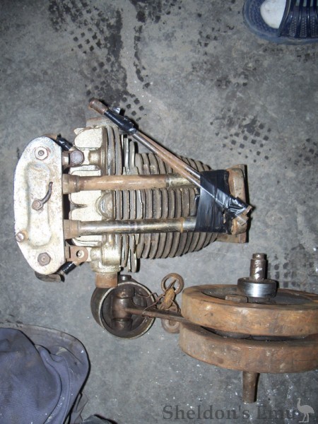 I am Karnok Attila, from Hungary i found it Motosacoche D50 sport engine. According to me those 4 existing pieces. 350ccm OHV was an engine in him.