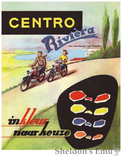 The firm also built commercial three-wheelers including the Centro Triporteur which was a moped with two wheels and a carrier at the the rear, and the Centro Motortruck designed for factory use, with the engine mounted above the single front wheel.