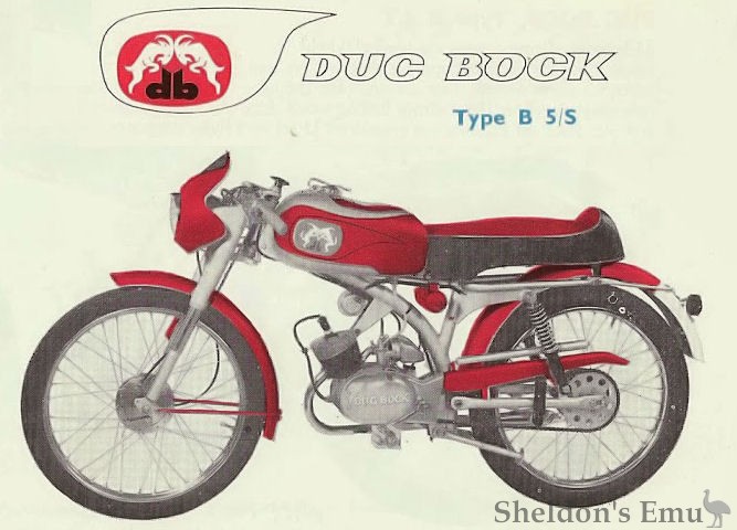 Ducati rider Ge van Bockel, Dutch 125cc Champion, imported and rebadged a number of Italian lightweights in the late 1950s which sold in the Netherlands and Belgium under the Duc Bok brand.