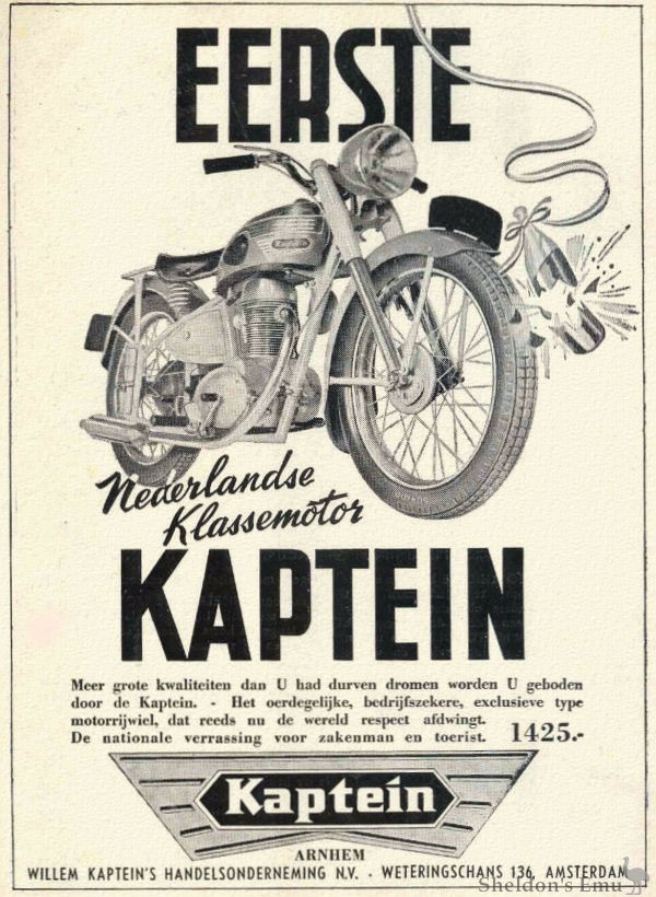 Founded by Willem Kaptein in 1922 as a bicycle repair shop, by 1925 he was an importer of Ariel and later dealt in Calthorpe, Imperia, Puch, Norton, Husqvarna, TWN and possibly others.