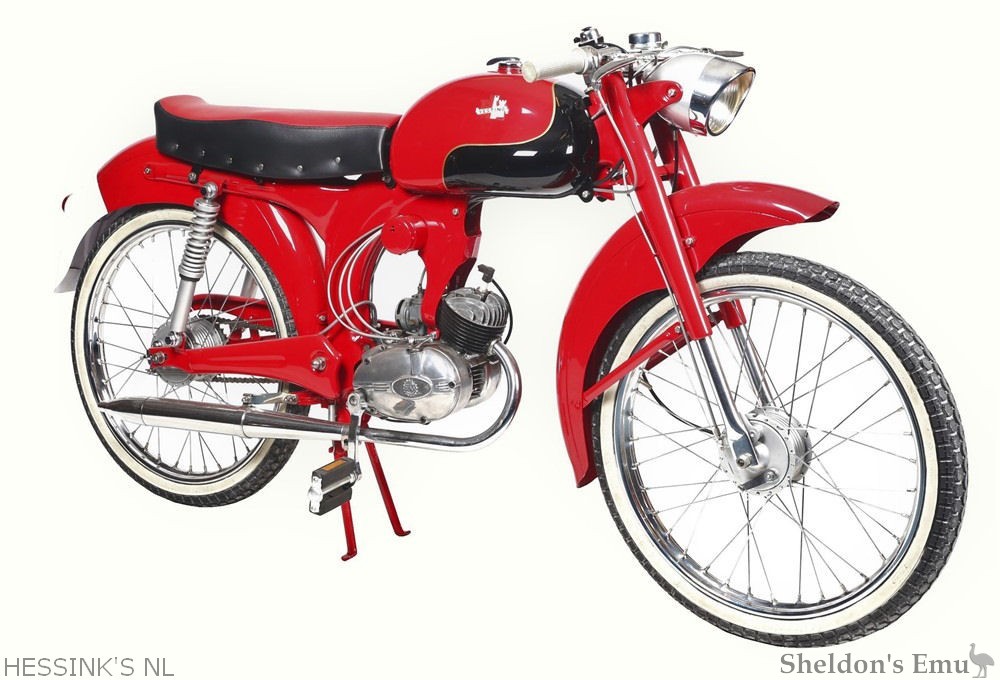 Otto Dik founded his bicycle firm in Haarlem and built mopeds in the 1950s, constructed with HMW engines in Paperino frames. Another of his machines was the 1956 Vesting Corsa with a Demm engine - it was a rebadged Demm.