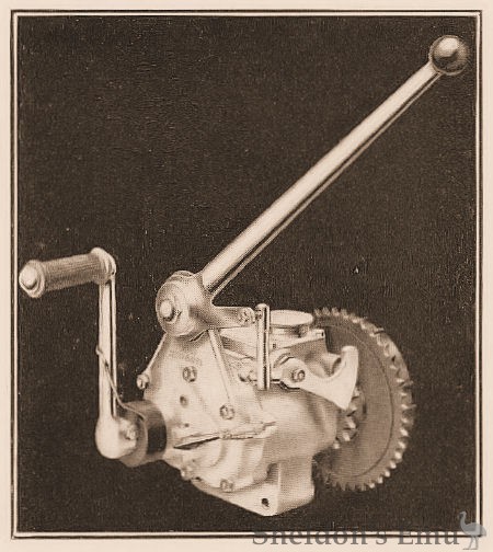 For 1929 All Models except Lightweight Model 80 can be supplied with either integral long lever or gate change Gear Control at the rider's option. Both types are illustrated above.