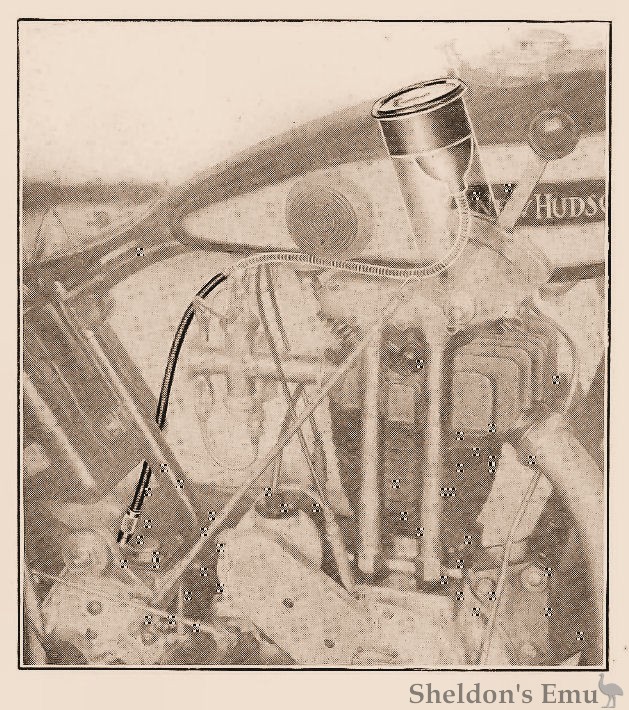 Smith's Speedometer fitted in Saddle Tank and Gear Box Driven (see illustration), is an inclusive feature at the Catalogue price, on Plus Power Model 88.