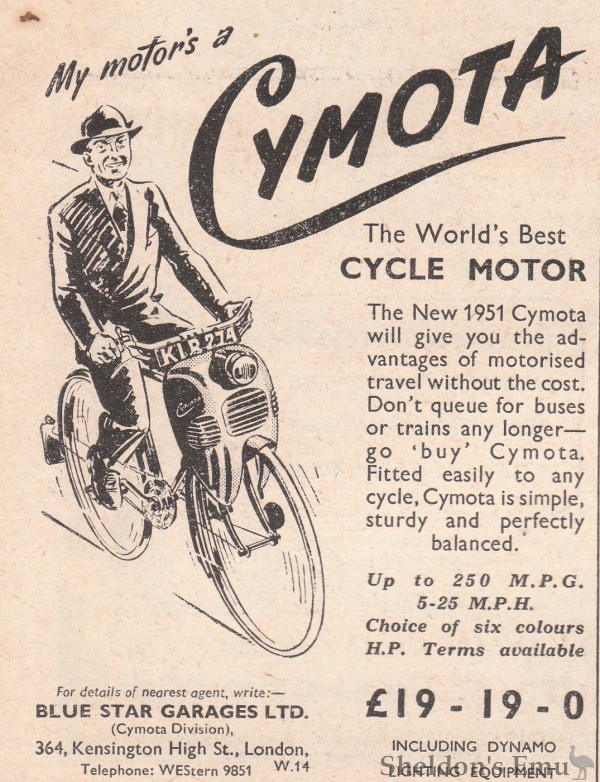 Cymota was a motorcycle produced from 1950 to 1951 at Erdington, Birmingham and sold by Blue Star Garages in London.