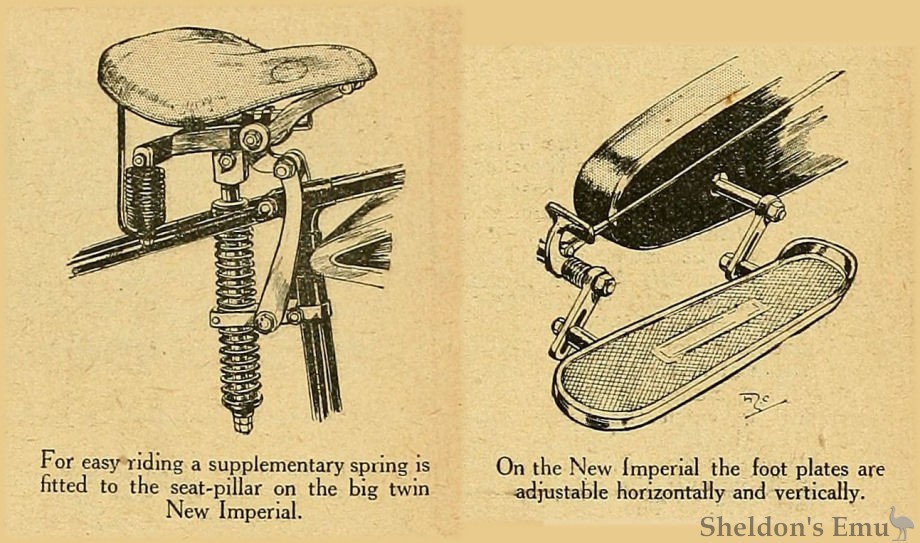 For easy riding a supplementary spring is fitted to the seat-pillar on the big twin New Imperial.