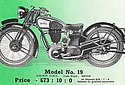 Price: Motorcycle £73 10s. Whole outfit £98. Extras: Speedometer, Smith's 80 m.p.h. Trip, 10s.