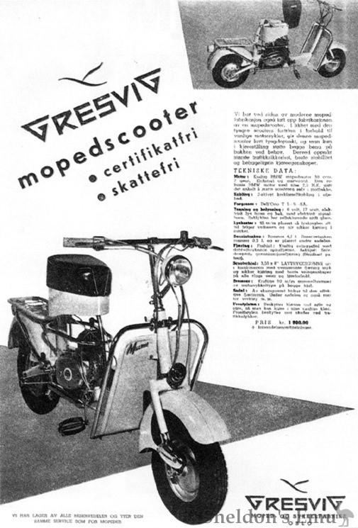 Gresvig of Oslo had the agency for the Mustad Folkescooter in Norway. It is believed these were assembled at the Gresvig factory in Strømsvegen, and used AMO engines. Gresvig also marketed a moped under their own name which was designed by Bjarne Christiensen, one of those responsible for the Mustad.