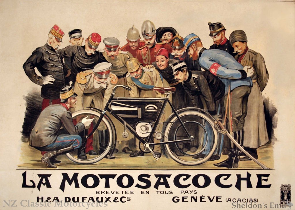 This motorcycle is all but identical to that in the Nidaros brochure from the 1910s: Motosacoche c.1914