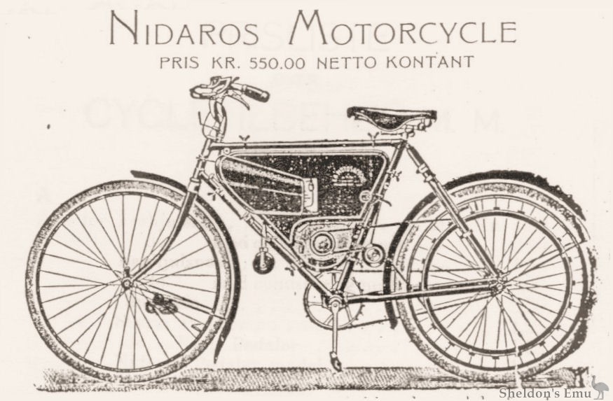 Johan Peter Lefstad began importing bicycles from Austria in 1888, and established his firm in April 1892. In 1904 he established a bicycle factory. The first motorcycles were Motosacoche machines which appeared around 1918 under the Nidaros brand.