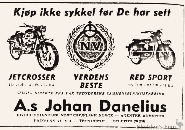 Johan Danelius assembled NV motorcycles at his factory in Trondheim. The firm marketed the NV 175 Jet Crosser and the NV 125 Red Sport in 1957. The company had previously assembled Ford automobiles.