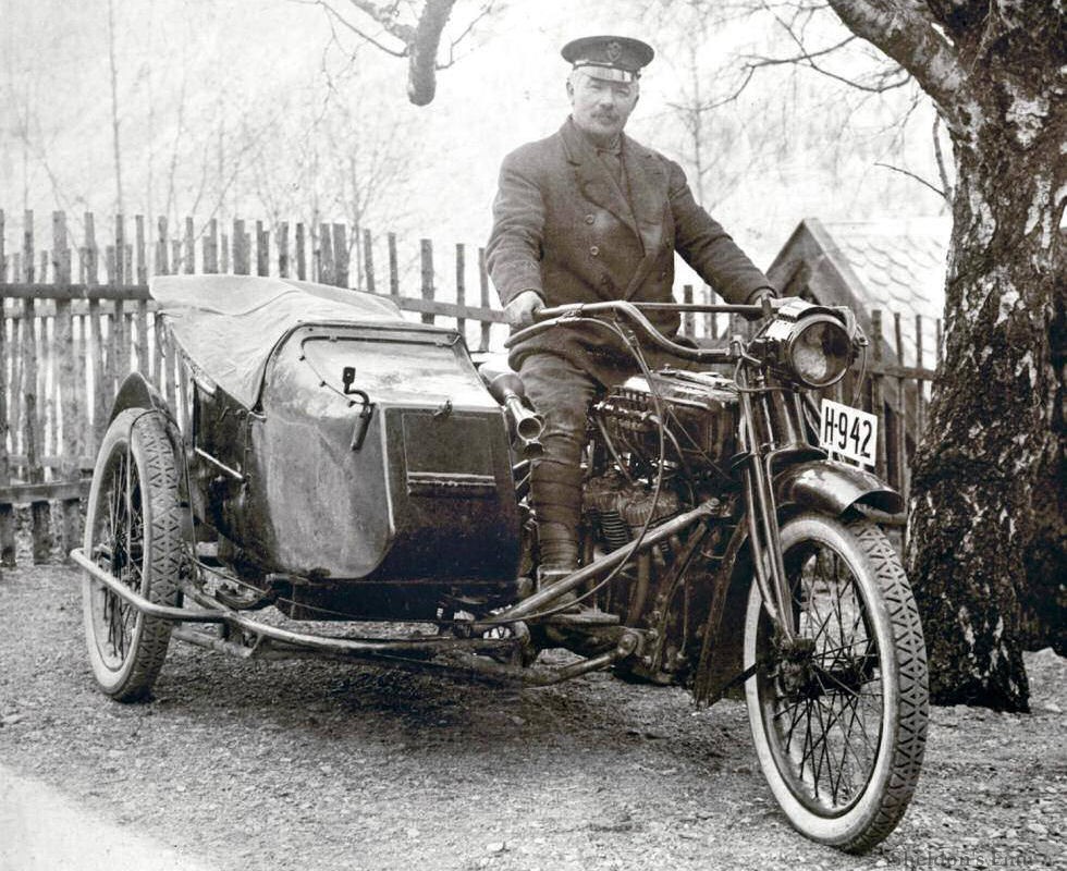 The sophisticated machine with its aluminium sidecar was in use until 1934 and made many long trips in Norway carrying Larsen, his wife, their three children and two dogs.