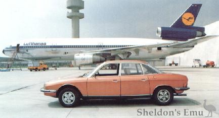 In the mean time NSU also worked on the model K70, yet another modern family car, somewhat smaller than the Ro80 and with an NSU first: a watercooled engine. The engine looked rather like the 1000- 1200 motors, but displaces 1600 cc. Only 23 prototypes were made under the name NSU. At the Frankfurt fair in 1969 the emblems were changed to VW and it was marketed as a VW K70.