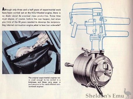 NSU built the first Wankel motor that was ready to be tested in a car in 1960, and in September of 1963 the Wankel Spider was presented at the Frankfurt fair. It had quite attractive lines, rather like a convertible Sport Prinz. Some 2,400 cars were built until production ceased in 1967.