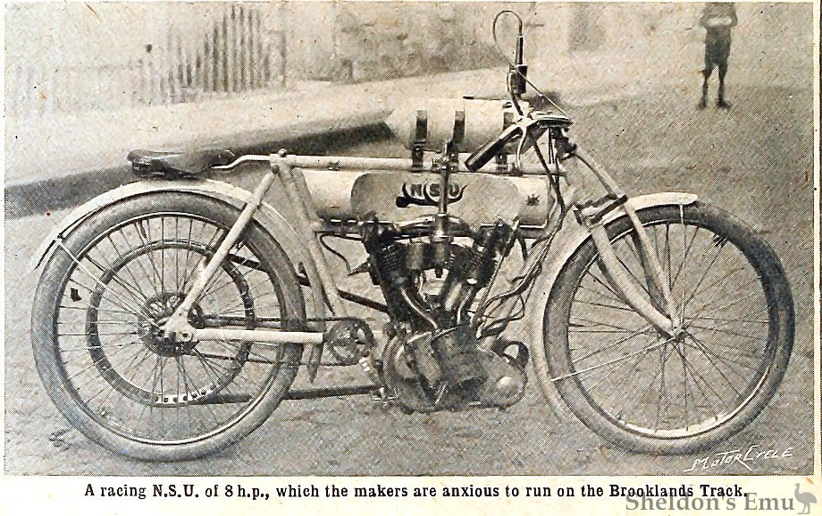 A racing N.S.U. of 8 h.p., which the makers are anxious to run on the Brooklands Track.