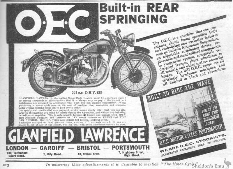 Throughout the 1920s various combination models appeared, such as OEC-Atlanta, OEC-Temple and OEC-Temple-Anzani. This was due, in part, to a close and successful involvement with race rider Claude Temple, for whom OEC built the frames and assembled the right cycle parts.