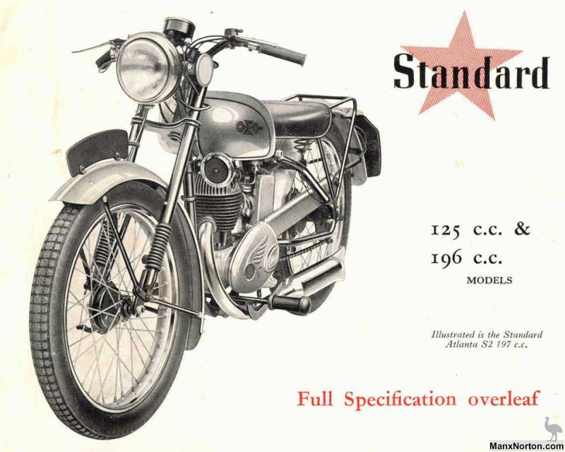 1936 The above machine was much revised and the smallest engine became a 250cc JAP. The concept was unpopular, so the project was dropped. The firm produced the Atlanta Duo, a design that had led on from the Whitwood. It was a very low seated, foot-forward design with foot-boards, and although a choice of engines was available, it was not a popular model. The seat was 19-21 inches in height as the engine was lowered and the rider had foot-boards that stretched forward, to form leg shields. There was a choice of engines - single ohv as 245cc or 500cc, or 750cc JAP twins. The low-slung frame had plunger rear suspension, OEC duplex steering and a dual seat with backrest. The model did not sell well and soon disappeared.