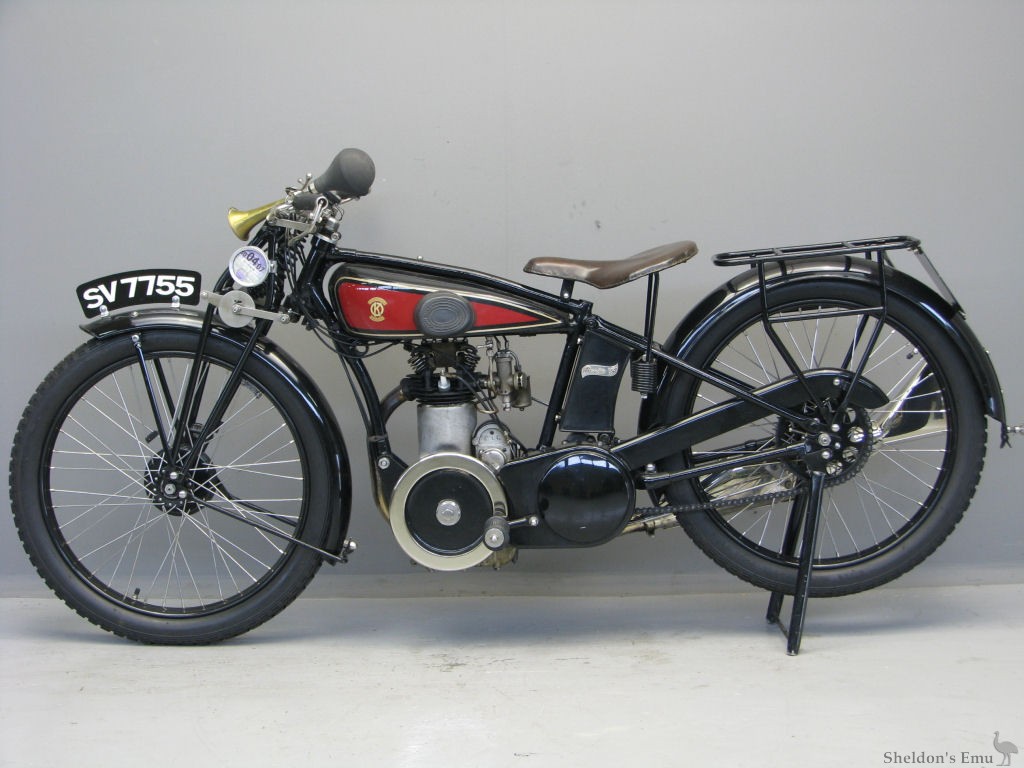 1914 The OK Junior was introduced, fitted with a 2hp engine, with overhead inlet valve, and drove a two-speed gearbox by chain. Final drive was by belt and other components included an Amac carburettor, Ruthardt magneto and Druid forks. Other models were the 3.5hp single and 3hp V-twin, both with OK engines.