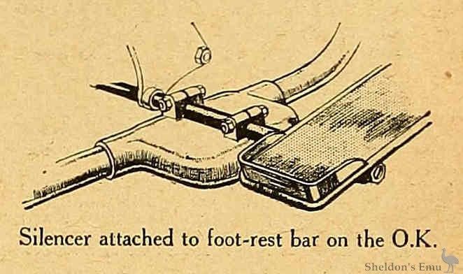 Quite the most attractive feature about this machine is its price. It is nevertheless well constructed, and a good example of the simplest form of motor bicycle. The tank has a solid pressed steel nose, and this year the model has been improved by the fitting of adjustable footrests, while the heel-operated brake pedal can be similarly adjusted to conform therewith.